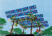 Solar collecting modular pergolas can help create cooling places with the shade of PV and flowering plants. Specialty PV cells and panels can add delifghtful possibilities.
